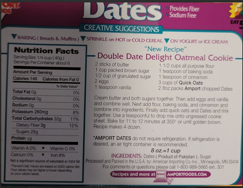 Cream butter and both sugars together. Then add eggs and vanilla and combine well. Next add flour, baking soda, and cinnamon and combine into ingredients. Finally add quick oats and dates and mix together. Use a teaspoon to drop mix onto ungreased cookie sheet. Bake for 11 to 12 minutes at 350 or until golden brown. Recipe makes 4 dozen.