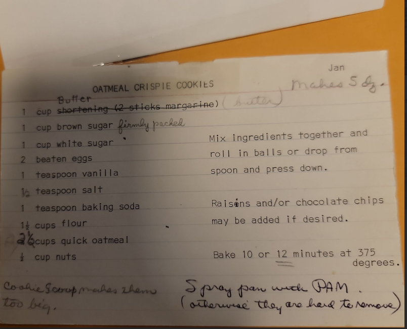 1 cup shortening (2 sticks margarine) -crossed out and butter added
