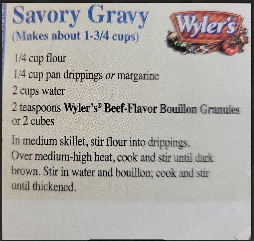 In medium skillet, stir flour into drippings. Over medium-high heat, cook and stir until dark brown. Stir in water and bouillon; cook and stir until thickened.